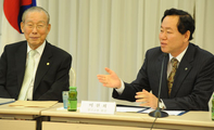 대한노인회(회장 안필준)는 14일 한국교총(회장 이원희)을 방문해 교육현안에 대해 논의 했다. 이원희 교총회장은 인사말에서 "고령화사회로 접어 들고 있는 시점에서 노인복지 및 노인취업에 관해 노력하는 모습에 많은 점을 배우게 된다"며 방문을 감사해 했다. 안필준 대한노인회회장은 교육현안에 대해 안보교육의 중요성을 강조하며 "교육자는 노동자가 아닌 스승의 길을 가야 한다"며 교육자의 길을 강조 했다. 한국교총과 대한노인회는 우리사회의 좌경화 바람을 우려하고 올바른 역사의식을 수립 할 수 있는 대책에 대해 논의 했다. 간담회가 끝난 뒤 대한노인회의 방문을 환영하며 기념촬영을 하고 있다.