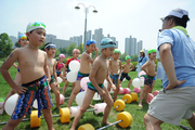 한강도하 전 준비운동으로 몸을 풀고 있다. 입수전 설레이는 마음을 진정시키며 "한강도전! 할 수 있다!"를 외치고 있다. 학생들의 안전을 위해 해병대전우회에서 보트를 이용해 순찰하고 있다. 학생들의 안전한 한강도하를 위해 곳곳에 고무보트를 사용해 길 안내 표지로 삼았다. 해병대특수수색대대 군인들이 학생들의 안전을 위해함께 헤엄을 치며 길 안내를 하고 있다. 덕수병설유치원을 비롯한 서울시내 108개교 722명이 제15회 서울어린이 한강헤엄쳐건너기를 하고 있다. 한강 도강에 성공한 학생들이 한국청소년북서울연맹 소속회원들의 안내로 도착지점으로 들어오고 있다. 한강도강에 성공한 학생들이 학부모들의 환영속에 도착하고 있다. 한강도강을 완주한 어린이가 마중나온 가족으로부터 축하의 꽃다발을 받아들고 기념촬영을 하고 있다. 한강도강에 성공한 학생들에게 완주메달을 걸어 주고 있다.
