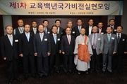 “논쟁을 위한 논쟁을 중단하고, 현실을 진단하며 미래의 방향을 제시하는 큰 틀의 교육 패러다임을 만들어 나가야 한다.” 우리 교육의 중․장기적인 어젠다와 비전창출을 위해 사회 각계 대표와 원로들이 한자리에 모여 머리를 맞댔다. 전성철 세계경영연구원 이사장, 김대식 민주평화통일자문회의 사무처장, 성낙인 한국법학교수회 회장, 이현청 상명대 총장, 송월주 전 조계종 총무원장 등 31명은 9일 서울 신라호텔에서 ‘제1차 교육백년국가비전실현모임’을 갖고 “국가백년지대계인 교육의 방향을 잡아 가는데 힘을 보태겠다”고 밝혔다. 이들은 “1980년대 이후 나타나기 시작한 이념대립과 가시적 성과에 급급한 역대 정권의 근시안적 정책으로 우리 교육이 큰 방향과 거시적 관점을 잃어가고 있다”며 “세계가 다투어 교육개혁을 부르짖고 달려가는 지금도 우리는 소모적 논쟁에 경도되어 한 발자국도 앞으로 나가기 어려운 실정”이라고 진단했다. 이날 모임의 경과를 보고한 이원희 한국교총 회장은 “지금 우리 사회는 국민소득 3만불의 선진한국을 창조하는데 교육이 중요한 역할을 하기 바라고 있다”며 “경륜 있는 분들이 함께 의견을 나누고, 이 의견이 국가정책에 투영돼 안정속의 변화가 일어날 것으로 믿는다”고 말했다. 임시의장을 맡아 회의를 진행한 손병두 한국경제연구원 상임고문(전 대교협 회장)은 “앞으로 모임에서 논의되는 조언과 제안이 국가교육정책에 적극 반영돼야 한다”며 “이 모임을 장기적이고 초정권적으로 원활히 진행하기 상임집행부를 구성하겠다”고 밝혔다. 한편 이날 모임에 초청된 안병만 교과부 장관은 ‘이명박 정부의 교육정책 방향’을 주제로 한 특강에서 “그동안 교육 수요자인 학부모들이 오로지 대학 가는 것을 목표로 자녀 교육에 몰입해 왔기 때문에 공급자인 대학은 너무 편하게 학생을 뽑았다”며 “이런 관행을 깨는 것이 입학사정관제”라고 설명했다. 안 장관은 “입학사정관제는 공정성과 신뢰성이 관건인데 대학마다 사정관을 여러 명 둘 것이고, 한 학생을 다단계 전형을 통해 종합적으로 평가해 뽑기 때문에 그날 하루 시험을 잘 봤느냐에 의해 당락이 결정되는 것보다 더 객관적이고 정확할 수 있다”고 덧붙였다. 안 장관은 “이명박 정부 교육정책 핵심은 평준화의 기저에서 수월성을 추구하고, 공통과정에 충실하면서도 자율성과 다양성을 지향하는 것”이라고 강조했다. 교육백년국가비전실현모임 위원 명단 정원식 전 국무총리, 박관용 전 국회의장, 김대식 민주평통 사무처장, 정종택 충청대 총장, 손병두 한국경제연구원 상임고문, 전성철 세계경영연구원 이사장, 홍승용 전 인하대 총장, 송월주 전 조계종 총무원장, 이종윤 서울교회 위임목사, 이수영 새문안교회 담임목사, 이기준 한국과학기술단체총연합회 회장, 민경찬 바른과학기술사회실현을위한국민연합 상임대표, 이규석 한국과학교육단체총연합회 회장, 김철수 학술원 회원, 김종구 전 법무장관, 성낙인 한국법학교수회 회장, 김천주 대한주부클럽연합회 회장, 장석춘 한국노총 위원장, 이배용 이대 총장, 문용린 서울대 교수, 윤종건 한국창의력교육진흥원 원장, 이현청 상명대 총장, 최태상 전 경복고 교장, 강희성 호원대 총장, 권재술 교원대 총장, 류기일 극동대 총장, 이남교 경일대 총장, 임동권 전 서울시교육청 부교육감, 장석민 전 재활복지대 총장, 하윤수 부산교대 기획처장, 이원희 한국교총 회장(이상 무순)