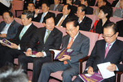 29일 국회의원회관 대회의실에서 국회지방자치연구포럼, 국회의원정해걸(한나라당), 이시종(민주당), 임영호(자유선진당) 의원 공동주최로 '교육감.교육위원 선출방식, 이대로 둘 것인가?'란 주제로 교육자치토론회가 개최 되었다.3당 대표 등이 참석한 가운데이원희 교총회장이 이회창 자유선진당 대표에게 교육자치의 중요성을 강조하고 있다.