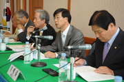 한국교총(회장 이원희)과 이군현 교육위원(한나라당) 공동주최로 5일 국회 귀빈식당에서 '교육자치제도 개선을 위한 토론회'가 개최 되었다. 허종렬 서울교대 교수가 '최근 지방교육자치법 관련 쟁점 검토'란 주제로 발표를 하고 있다. 토론회에 앞서 국민의례를 하고 있다. 좌로부터 임갑섭 전국교육위원협의회장, 정해걸 한나라당 의원, 이원희 교총회장, 이군현 한나라당 의원. 5일 국회 본관 3층 귀빈식당에서 전국교육위원협의회 후원으로 100여명의 교육계 인사들이참석한 가운데 교육자치제도 개선을 위한 토론회가 개최 되었다.