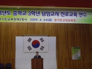 경기도교육청 산하 각 시도 교육청은최근 중학교 3학년 담임과 진로담당 교사들을 대상으로 진로지도 전문성 신장 연수를 실시하고 있다. 이 연수는 직업세계의 다양한 변화 이해와 진로선택의 중요성이 대두되는 중학교 3학년 학생들의 올바른 진로지도를 위해 마련됐다. 지난 4월 23일은 하남교육청, 24일은 고양교육청에서 중3 대상 연수를 실시하였으며 4월 29일은 김포교육청에서연수를 실시할 예정이다. 이 3군데 연수에 한국직업능력개발원 이영대 연구위원은 특강을 하였는데진로를 선택할 때 필요한 4가지 질문인 '나는 누구인가?, 무엇을 하기를 원하는가?, 왜 그것을 하고자 하는가?, 어디서 그것을 얻을 수 있는가?'를 중심으로 강의를 전개했다. 또한 진로선택을 위해서는 나를 이해한 후 자아 개념을 형성하고, 내가 가진 장점을 찾아내 내가 하고자 하는 일을 결정하기 위한 흥미 유형별.적성별 직업 및 계열별 특성에 대한 이해를 해야 한다고 하였으며 이와 함께 직업에 대한 가치관 정립 및 가치에 대응하는 직업을 찾는 방법을 소개하였다.