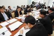 16일 국회 행정안전위원회 법안소위에서 공무원연금법과 관련해 논의 하고 있다. 올바른공무원연금법개혁공동투쟁본부 관계자들이 행정안전위원회 소속 국회의원들을 만나기 위해 위원장실 앞에서 대기하고 있다. 공무원연금법과 관련해 지난해 도출한 사회적 합의안 원안 통과를 협조 구하기 위해 논의 하고 있다.