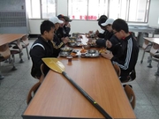 점심시간이 되자 제일먼저 우리학교 카누부가 도착했군요. 운동을 열심히 했으니 밥도 많이 먹어야겠죠? ^^* 오늘의 점심메뉴는 비빔밥. 우리학교 비빔밥에는 꼭 김가루가들어간답니다. 먹음직스런 깍두기. 근데 아이들한테는 인기가 별로랍니다. 집에서는 김치에 젓가락도 안 대다가 그래도 학교에선잘 먹는 아이들이 기특합니다. 손수 배식도 하고... 서로 많이 먹으려고 경쟁도 하고....ㅋㅋ 배식구 앞에서순서를 지켜가며 차례대로 배식받는 모습이 대견합니다. 배식구 앞에서 여유를 부리는 걸 보니 3학년학생들이군요. 예쁜 영양사 선생님께서 손수 깍두기를 떠 주자 남학생이 싱글벙글합니다. 점심시간마다 선생님들이 순번을 정해놓고 학생들의배식을 돕고 있습니다. 돌을 먹어도 소화를 시킬 수 있는 나이이니 점심이 얼마나 맛있을까요. 자리에 앉아서도 질서지키기는 철저합니다. "형님 먼저." 1학년 신입생들이 2, 3학년 형들이 식사를 하는 동안 식당 밖에서 대기하고있는 모습. 이번에 새로 구입학 식탁입니다. 식탁과 의자가 일체형이라 매우 편리합니다. 식사를 끝내고 일어서면 의자가 자동으로 식탁 안으로 들어가 따로 정리할 필요가 없답니다.