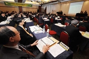 한국대학교육협의회(회장 손병두)는 15일 서울교육문화회관 거문고홀에서 2009년도 정기총회를 개최했다. 이날 손회장은 "고등교육 개선 및 수월성 높은 교육을 위해 매년 10조원 정도의 정부 재정지원이 필요함"을 강조했다. 안병만 교과부 장관이 정부의 대학교육 정책 방향 및 대학 재정지원 등 대학 자율화 현안에 대해 총장들에게 설명하고 있다. 이날 총회에는 총 198개 대교협 회원 대학 가운데 160여개 대학 총장들이 참석했다.