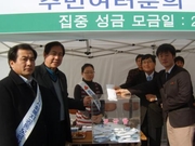 서령고등학교 강태웅 교감(사진 오른쪽에서 두 번째)과 학생회장 김용은 군(사진 오른쪽에서 첫 번째)이 서산시동문동사무소를 찾아 학생과 교직원들이 모금한 성금을 전달하고 있다. 서령고등학교 교직원회와 학생회는 12월19일(금) 연말 연시를 맞아 어려운 이웃들에게 삶의 희망을 전하고자 충남 서산시 동문동사무소에서 주최하는 '희망 2009 이웃사랑캠페인 운동'에 성금을 전달했다. 서령고 학생회와 교직원회에서는 해마다 연말이면 자발적으로 성금을 모금하여 불우한 이웃들과 따뜻한 정을 나누고 있다.