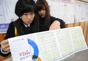 10일 2009학년도 대학수학능력시험 성적표가 배부된 가운데 서울 양재고에서 수험생들이 자신의 성적과 관련해 전형요강을 보고 있다. 10일 대학 수학능력시험 성적표가 배부된 가운데 서울 양재고에서 한 수험생이 조심스럽게 자신의 성적을 확인하고 있다.
