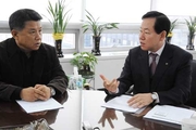 9일 이원희 한국교총 회장이 장석춘 한국노총 위원장과의 특별대담에서 공무원연금법 및 교원정원 동결 등 교육현안에 대해 논의 하고 있다. 이날 양측은 건전한 방식의 노사관계를 통해 서로 참여와 협조속에 협력할 것을 다짐했다.