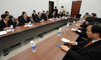 9일 한국교총을 비롯한 시도교육감 대표 및교육위원회 대표가 한나라당 임태희 정책위원장을 방문해 교육세 폐지 철회및 교육재정 확충, 교원정원 동결 문제 등과 관련해 논의하고 있다. 좌로부터 김승태 충남교총 회장, 이원희 한국교총 회장, 공정택 서울시교육감, 신상철 대구교육감, 설동근 부산교육감, 임갑섭 서울교육위의장, 박규선 전북교육위 의장. 임태희 정책위원장이 교육세법 폐지및 교육재정 확충과 관련해 교육계의 양해와 협조를 구하고 있다. 우로부터 임태희 한나라당 정책위원장, 나경원 제6정조위원장, 우형식 교과위 제1차관, 임해규 교육위 한나라당 간사.