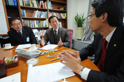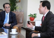 21일 나카무라 유즈루 일교조 중앙집행위원장이 이원희 한국교총 회장을 방문해 한.일 교육문제 교류를 위해 함께 노력할 것을 다짐하고 있다.