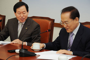 한국교총 이원희 회장이 12일 자유선진당 이회창 총재를 방문한 자리에서 교육세폐지 철회 및 수석교사제 법제화 등을 위해 힘써 줄 것을 당부하고 있다. 최한기 충북교총 회장 (좌로부터), 김승태 충남교총 회장, 이원희 한국교총 회장, 이회창 자유선진당 총재, 박선영 자유선진당 대변인. 이회창 자유선진당 총재는 당면 교육현안에 대해 한국교총의 입장을 충분히 이해하고 있음을 강조하며 국회의 입법 활동에 적극 반영할 것을 약속했다.