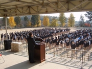 오늘부터 수능일인 내일까지수헙생은왕이된다. 듣기평가가 있는 언어영역과 외국어영역 시간에는전투비행 후련은물론이고 여객기의 이착륙이 전면 금지된다. 58만여명의 운명이 13일 단 하루에 결판나기 때문이다. 공사간 정신 없이 바쁜 와중에도 잠시 짬을 내어 수험생들을 격려하기 위해한걸음에 달려오신 학부모님들과 총동창회장님 및 관계자 여러분들! 수험생을 바라보는애정어린 시선은 선생님과 부모님 모두 애처롭기는 한가지다. 오늘의 주인공답게 운동장 한가운에 늠름하게 도열해 있는 고3학생들. 여기서도 긴장감이 느껴진다. 고3 선배들을 바라보는 후배들의 표정도 바짝 긴장해 있다. 고3학생들을 도와주려는 듯 날씨 또한 따뜻하고 쾌청하다. 어머님들을 대표해 수험생들을 따듯하게 격려해주시는 김순희 자모회장님. 오늘 행사의 사회는 특별히최순희 교무부장님께서봐주셨다. 차성남 총동창회장님께서도 먼길을 마다않고 달려와 후배들의 수능대박을 기원했다. 재학생들을 대표해 김용은 학생회장이 선배님들을 위해 격려사를 하고 있다. "수능은 아주 높고 높은 산이라고 생각합니다. 만약 이 산을 오르는데 아무런 장애가 없다면 아마 중도에 포기할지도 모릅니다. 하지만 중도에도전할 장애가 있기에 정상 정복의 의욕도 생겨나는 법입니다. 선배님들, 부디 모든 장애물을 극복하고 정상에 올라 수능대박이라는 깃발을 힘차게 꽂으십시오. 선배님들의 수능대박을 기원합니다. 충효!" 전대신 전임 학생회장이 내빈께 감사의 인사를 드리고 있다. "안녕하십니까? 3학년 대표 전대신입니다. 서령고등학교에 입학한 지가 엊그제 같은데 벌써 수능시험이라는 문턱에 서게 되었습니다. 저희들이 여기까지 올 수 있었던 것은 부모님과 교장 교감 선생님을 비롯한 모든 선생님들, 그리고 후배 님들의 응원과 격려가 있었기 때문에 가능했다고 생각합니다. 앞으로 남은 시간, 끝까지 마무리 잘하고 마음을 다잡아 서령인의 실력을 마음껏 펼치고 오겠습니다. 서령의 명예를 위해서 그리고 나아가 우리 자신의 꿈을 위해서 최선을 다해 시험에 임하겠습니다. 다시 한번 저희 3학년을 응원해 주시는 모든 분들께 감사의 말씀을 드리면서 이만 마치겠습니다. 감사합니다." 학생회 임원진들이 선배들의 수능대박을 기원하며 파이팅을 외치고 있다. 마지막으로 합격엿과 합격떡을 선물하는 후배들. 이 엿을 먹고 꼭 합격하시길 빕니다.