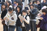 2009학년도 대학수학능력시험을 하루 앞둔 12일 인천에서 시험을 치르는 수험생들에 대한 예비소집이 12일 석정중학교를 비롯한 각 고사장에서 일제히 있었다. 석정여중에서 있었던 예비소집에 참가한 수험생들이 안내요원으로부터 시험 당일 준수 사항을 들은 후 수험표를 교부 받고 있다.
