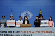 사교육을 받고도 수학을 포기하는 학생이 늘고 있는 가운데, 초·중·고 학생 3명 중 1명꼴로 ‘수포자’에 해당한다는 조사 결과가 나왔다. 수학 사교육 의존이 심화되는 상황에서도 학습 결손과 이해 부족이 해소되지 않으면서 수학 포기 현상이 구조적으로 고착되고 있다는 지적이 제기됐다. 27일 국회 교육위원회 소속 강경숙 의원(조국혁신당)은 시민단체 사교육걱정 없는세상과 공동으로 국회에서 ‘수학 사교육 실태조사 결과 및 수포자 현황 발표 기자회견’을 열고, 수학 포기 학생 증가와 사교육 의존의 심각성을 지적하며 국가 차원의 종합 대책 마련을 촉구했다. 이번 설문조사는 2025년 11월 17일부터 28일까지 전국 초·중·고 150개교(초 60, 중 40, 고 60)를 대상으로 실시됐으며, 학생 6356명과 교사 294명 등 총 6650명이 응답했다. 조사 결과 ‘수학을 포기하고 싶다’는 응답은 초등학교 6학년 17.5%, 중학교 3학년 32.9%, 고등학교 2학년 40%로 나타났다. 이는 2024년 국가수준 학업성취도 평가의 수학 기초학력 미달률보다 2~3배 높은 수준이다. 교사의 80.7%는 수학 포기 현상이 “매우 심각하다”고 답했다. 학생들의 정서적 부담도 큰 것으로 조사됐다. 학생 10명 중 8명(80.9%)이 수학으로 스트레스를 받은 적이 있다고 응답했으며, 특히 고등학생의 86.6%는 “과도한 스트레스”를 호소했다. 수학 포기의 주요 원인에 대해 학생들은 ‘높은 난이도(42.1%)’를, 교사들은 ‘누적된 학습 결손(44.6%)’을 가장 많이 꼽았다. 사교육 의존도 역시 높았다. 학생의 64.7%가 수학 사교육을 받고 있었으며, 주요 이유로는 ‘시험 성적 향상(32.9%)’과 ‘자기주도 학습의 어려움(24%)’이 제시됐다. 사교육을 받는 학생의 85.9%가 선행학습을 경험했지만, 이 가운데 30.3%는 학습 내용을 “이해하지 못한다”고 응답했다. 강 의원은 “학생 10명 중 3명은 사교육에 의존하면서도 내용을 이해하지 못한 채 무의미한 반복 학습을 하고 있다”며 “이는 공교육이 제 역할을 하지 못하는 구조적 문제의 결과”라고 지적했다. 교사 인식 조사에서도 공교육의 한계가 드러났다. 초·중·고 교사의 60% 이상은 “학교 수업 이해를 위해 사교육이 필요하다”고 응답했으며, 고교 교사 10명 중 7명은 “사교육 없이 수능 킬러 문항 해결이 어렵다”고 답해 공교육 내 심화된 격차를 보여줬다. 교사들은 수포자 예방을 위한 최우선 과제로 ‘학생 맞춤형 소그룹 수업 강화(39%)’를 꼽았고, ‘기초학력 진단 프로그램 확대(23.3%)’, ‘수능·내신의 변별력 완화(13.7%)’ 등 제도 개선 필요성도 제기했다. 강 의원은 정부의 2026년 교육부 업무계획과 관련해 “AI 중심 정책에만 치우쳐 다수 학생이 수학에서 소외되고 있다”며 “초등 단계의 기초학력 보장부터 수포자 예방 종합대책을 마련해야 한다”고 촉구했다. 이어 ▲초등 단계 기초학력 보장 중심의 ‘수포자 예방 종합대책’ 수립 ▲상대평가 중심의 ‘줄 세우기 평가’ 중단 및 절대평가 전환 ▲전공별 수학 학습 수준 제시 등 3대 대책을 정부에 제안했다. 강 의원은 “고교학점제 시행과 연계해 대학 전공별로 필요한 수학 수준을 명확히 제시해야 사교육 의존과 수포자 확산을 막을 수 있다”며 “수학 학습 문제는 더 이상 학교의 문제가 아닌 국가의 과제”라고 강조했다. 또 “수학 학습 부진은 개인의 문제가 아닌 구조의 문제”라며 “정부는 ‘수학 기초학력 보장’을 국가 교육정책의 핵심 목표로 삼아야 한다”고 밝혔다. 그는 “교육의 본질은 단 한 명의 학생도 포기하지 않는 것”이라며 “수포자 예방 대책 마련은 국가의 시급한 책무”라고 덧붙였다.