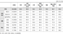 수학이 중학생의 흥미와 효능감 면에서 주요 과목 중 꼴찌지만, 사교육 참여율에서 1위로 나타났다. 한국교육개발원이 최근 발표한 ‘국가수준의 공교육 모니터링을 위한 학교교육 실태조사 연구’에 이 같은 설문조사가 담겼다. 전국의 중 1~3학년 학생 약 2만5000명을 대상으로 교과별 교과 흥미도를 분석한 결과 수학은 100점 만점에 59.2점으로 주요 7과목 중 가장 낮았다. 체육이 76.0점으로 최고점을 기록했고 그다음이 음악·미술 등 예술(69.1점), 국어(63.4점), 과학·기술·가정·정보(62.8점), 영어(60.4점), 사회(59.9점) 순이었다. 특히 학년이 올라갈수록 수학에 대한 흥미는 점차 줄어드는 것으로 나타났다. 1학년 때 61.0점이었으나 2학년 때 58.6점으로, 3학년 때는 57.8점으로 낮아졌다. 성별로는 남학생(63.7점)보다는 여학생(55.0점)이 더욱 수학에 흥미를 느끼지 못했다. 대도시(59.7점), 중소도시(58.6점), 읍·면(59.6점) 등 거주지역 규모와는 관계없이 선호도는 모두 낮은 것으로도 파악됐다. 자신이 해당 과목을 얼마나 잘하는지에 대한 인식인 효능감 측면에서도 수학은 60.2점으로 가장 낮았다. 남학생(64.9점)과 비교해 여학생(55.8점)의 점수가 크게 낮다는 점도 흥미도 결과와 비슷했다. 사교육 참여율은 교과목 중 최고로 나타났다. KEDI 설문조사에서 중학생 자녀가 사교육을 받는다고 응답한 학부모 약 1만6000명 중 수학 사교육을 시킨다고 응답한 사람은 전체의 87.6%에 달해 영어(83.6%)보다 앞섰다. 국어·논술(31.9%)과 비교하면 3배에 가까운 수준이다. 수학 사교육 비용은 월 30만 원 이상이 42.9%로 가장 많았다. 20만 원 이상 30만 원 미만(39.3%), 10만 원 이상 20만 원 미만(12.5%)이 뒤를 이었다. 수학 사교육을 시키는 이유에 대해서는 보충학습(93.3%)과 심화·선행학습(89.0%)이 1·2위를 차지했다.