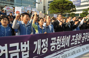올바른 공무원연금법 개혁 공동투쟁본부는 14일 대한상공회의소 앞에서 공무원연금법 개정 공청회 관련 '공무원.교원노조/단체 공동 기자회견'을 가졌다. 이날 참석자들은 "고통을 감내하는 어려운 결단을 했음에도 국민연금과 단순 비교로 사실을 왜곡하여 우리의 결단을 폄훼하는 것은 공직사회의 불안을 부추기는 것"이라며 왜곡을 일삼는 세력에 대해 강력히 대응할 것을 밝혔다. 조흥순 한국교총 사무총장이 공무원연금법 개정 공청회와 관련한 기자회견문을 낭독 했다. "공적연금은 적정 노후생활 보장이 우선임"을 강조하며 "왜곡 여론을 근거로 공무원에게 일방적인 고통만을 또 다시 강요한다면 100만 공무원 총궐기대회 등을 통해 투쟁할것"을 다짐했다.