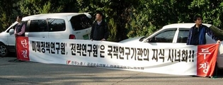 “정권 코드 맞추기로 비춰지는 연구기관 개편은 문제 있다.” 14일 국회 정무위의 경제인문사회연구회에 대한 국정감사에서는 모처럼 한나라와 민주당의 의견이 일치했다. 한반도선진화재단이 2일 공청회에서 발표한 경제인문사회연구회 개편방안에 대해 한나라당 의원들도 반대 입장을 밝혀 주목을 끈 것이다. 이진복(한나라당) 의원은 “새 정부 첫 경제인문사회연구회 개편 연구용역을 한반도선진화재단에 의뢰한 것은 정권교체에 따른 코드 맞추기로 비칠 우려가 있다"고 밝혔다. 이 의원은 “한반도선진화재단의 박세일 이사장은 이명박 대통령 선거캠프 시절 공식 활동은 하지 않았지만 MB 정부의 선진화 개념정립에 일조한 인사”라며 “정권 초기에 정권코드에 부합하는 연구원 손보기로 비치지 않기 위해서는 연구용역을 객관적이고 중립적 기관에 위탁하는 것이 바람직할 것”이라고 주장했다. 이 의원은 연구용역 안에 대해서도 “개편안이 논리도 없고 근거도 빈약하다”며 비판을 가했다. 여러 연구보고서에서 발췌한 ‘표절 용역 보고서’라는 것이다. 이 의원은 또 “정부는 청와대 또는 총리실 소속 초대형연구소 설립 안을 염두에 두고 있는 것 같다”며 “이 안은 연구기관의 '정치 줄 세우기'라는 또 다른 문제를 야기할 수 있다"고 우려했다. 한나라당 현경병 의원 역시 “연구기관 개편은 신중해야 한다”며 “연구과정과 결과물에 대한 독립성 보장, 연구원들의 연구 환경 개선 등을 우선 고려해야 한다”고 말했다. 이한구(한나라)의원도 “지난 정권에서도 국책연구소 뿐만 아니라 민간연구소까지 정권의 입맛을 맞추느라 애를 쓰는 모습을 봤다”며 “연구원들이 소신을 가지고 전문성을 발휘할 수 있는 방안을 마련해야 한다”고 힘을 보탰다. 민주당 의원 역시 같은 목소리를 냈다. 홍재형 의원은 “용역기관인 한반도선진화재단이 대통령직 인수위 소속 인사들이 대거 참여한 연구재단이라는 점은 문제”라며 “종합적 의견수렴 없이 한 가지 안으로 결론짓고 밀어붙이지 않겠느냐”고 지적했다. 홍 의원은 또 “국책연구기관은 연구의 자율성이 최대한 보장돼야 하고 정부시책에 대해서도 건설적인 방향에서 비판할 수 있어야 한다”면서 “통폐합을 하게 되면 연구기관이 정부의 하수인으로 전락할 수 있다”고 강조했다. 한편 전국공공연구노동조합은 이날 국감이 열린 한국개발연구원(KDI) 앞에서 집회를 열고 “구조개편이 일방적으로 추진돼서는 안 된다”며 “연구 자율성을 침해하고 연구기관을 부처의 ‘지식시녀’나 정권 정당화기구로 전락시키는 안을 받아들일 수 없다”고 입장을 밝혔다. 사진