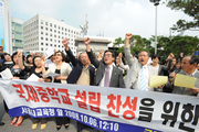 국제중학교 설립 주민대책위원회는 6일 서울시교육청 정문에서 '국제중학교 설립 찬성을 위한 기자회견'을 가졌다. 이날 참석자들은 서울시 교육위원들의 국제중 설립 동의를 촉구했다.