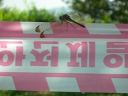 어느덧 늦가을이다. 조금만 더 있으면 잠자리 구경하기도 어려울 듯하다. 어느 날 공사장 구역 표시로 띄어놓은 가로줄에 잠자리가 앉아서 휴식을 취하고 있다. 마침 그 밑에 있는 글자가 '안전제일'이다. 잠자리가 한글을 모르는 것은 당연하다. 우연히 그 곳에 앉았을 뿐이다. 곤충이나 사람이나 안전이 제일이다. 자칫 잘못하다간 생명이 달아난다. 며칠 전, 운전하다가 자칫 교통사고가 날 뻔하였다. 그것도 하루에 두 번씩이나. 한 번은 상대방 잘못, 한 번은 내 잘못. 조금만 천천히 갔어도 마음만 느긋하게 먹었어도 사고는 미연에 방지할 수 있다. '안전제일' 글자 위에서 휴식을 취하는 잠자리를 보면서 교통안전을 생각해 보았다.