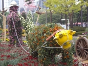 10월 5일 코엑스 앞 국화전시장에서 찍은, 국화로장식한 농부와 소의 모습입니다.국화전시회 한번 구경하세요. 학교에 국화 꽃을 장식하면 아이들 정서에도 좋을 듯합니다.