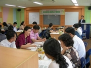 봉사활동 시범학교 담당자 및 교사지원단 협의회 열려 경기도교육청 지정 봉사활동 시범학교 담당자 및 교사지원단 협의회가 9월 10일(수) 15:00 회원 37명이 참가한 가운데 서호중학교 도서실에서 열렸다. 이 날 회의는 도내 25개 봉사활동 시범학교 운영 점검및 평가, 권역별 합동보고회, 운영 개선 방안 모색을 모색하기 위해 열렸는데 도교육청 박해오 장학사는시범학교 운영 활동 결과 제출, 권역별 발표회 준비, 운영보고서작성 방법, 시범학교 운영 평가 등에 대한 자세한 안내를 하였다. 봉사활동 시범학교 권역별 합동보고회 일정은 1권역(수원, 군포의왕, 안산, 안성, 평택, 화성)은 11월 5일 안산1대학, 2권역(성남, 광주하남, 용인, 양평, 여주, 이천)은 11월 7일 정자청소년수련관, 3권역(부천, 김포, 광명, 시흥, 안양)은 11월 20일 덕산중학교, 4권역(포천, 파주, 고양, 구리남양주) 교문중학교에서 개최된다. 연구학교 공개보고회 '거품' 없앤다 한편 도교육청에서 시달된 '연구학교 공개보고회 지도 관점'이 시달되었는데 예년에 비해 획기적인 것이 포함되어 형식적, 권위적,보여주기, 과시형 보고회가 사라질 전망이다. 눈에 띄는 관점 몇가지를 소개한다. [ ]는 리포터 의견임. [권위주의 타파]-보고회장 좌석배치는 학교장 중심으로 하고 임석관석 및 내빈석을 없애며 모든 참가자에게 동등한 좌석을 제공한다. / 교육감, 내빈축사는 생략한다. [허례허식 추방]-내용 중심으로 환경을 구성하고 휴게실, 꽃바구니, 코사지, 음식접대를 금지하며 전시물은 주제와 간련있는 내용으로 검소하게 진열한다. / 공개보고회 식전행사는 하지 않는 것을 원칙으로 한다. [보고형식 혁신]-토론, 워크숍, 세미나 등 학교 형편과 주제에 맞는 다양한 체험 중심의 보고를 하며 실패사례도 보고한다. [참가자 참여 유도]-참가자 참여 위주 일정으로 진행하며 내용 및 참여활동을 사전에 부여하고 보고히 당일 적극적인 질의 및 참여활동을 하도록 한다. [간소화]-보고서, 일반화 자료 및 안내장은 학교 홈페이지에 탑재 활용하고, 보고회 당일 인쇄물은 보고서, 일정표, 지도안, 일반화 자료 등을 한 권으로 요약하여 제공한다. 지도 관점 14가지가 제시되었는데과거 잘못된 관행을 깨뜨려일선학교에서환영 받을 것으로 기대된다.그대로 실천이 된다면 공개 보고회 거품이 꺼지고효율적으로 운영될 것으로 예상된다.
