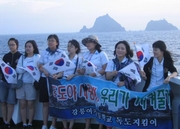 동북아역사재단과 한국해양대가 공동주최한 ‘영토사랑 청소년 독도캠프’ 참가자들이 14일 해양대 실습선 ‘한바다호’를 타고 독도로 향하고 있다. 참가자들 뒤로 서도(왼쪽)와 동도가 보인다. 이번 행사에는 전국 19개 ‘독도지킴이 협력학교’ 학생 95명과 인솔교사 44명 등 160여명이 참가했다. 한편 한국교총은 독도 특별수업 자료를 28일부터 홈페이지(www.kfta.or.kr)에 탑재, 일선 초․중․고에서 활용토록 했다. 독도=교과부 공동취재단