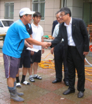 지난 25일 경북 봉화군 춘양면에 8시간 동안 220㎜의 비가 집중되면서 이 지역 학교 및 교직원사택이 큰 피해를 입었다. 이에 교총은 30일 봉화군교총(회장 배용호·봉화중고 교장)을 방문해 위로금을 전달했다. 봉화군에는 이번 집중호우로 인명 피해 8명(사망 4명, 실종 4명), 이재민 200여명이 발생했고, 이 중 춘양면 춘양초(교장 김상복)·서벽초(교장 박모교)와 법전교직원사택도 총 2억 5000여만원의 피해를 입었다. 춘양초의 경우 운동장과 테니스장에 토사가 유입돼 3000여만원의 피해를 입었고, 서벽초는 담장이 유실됐다. 법전교직원사택의 경우엔 더 심각하다. 전체 22세대 중 절반인 11세대가 침수되고, 진입로 120m가 유실됐다. 사택거주 교원 차량 15대도 물에 잠겼다. 비가 그친 후 군장병, 소방인력 등이 투입돼 피해복구와 실종자 찾기에 힘을 쏟고 있다. 봉화교육청 교직원 20여명도일손을 돕고 있다. 이날 위로금 전달에는 김동극 경북교총 회장, 우석구 봉화교육장, 조흥순 한국교총 사무총장, 하용호 경북교총 사무총장, 김경윤 한국교총 조직본부장 등이 함께 했다.