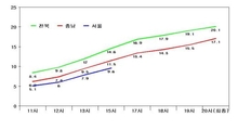 서울시교육감 선거 투표율이 당초 예상했던 20%를 밑돌 것으로 예상되고 있다. 오후 3시 현재 집계된 투표율은 9.6%. 최종투표율 20.1%를 기록했던 전북교육감 선거의 동시간대 투표율 14.6%에 5%포인트 뒤져있는 상태로 지금 추세로는 20% 달성이 어려울 것으로 보인다.한 시간에 2%이상 투표율이 올라도 20%에 못 미치기 때문이다. 더욱이 최종 투표율 17.1%를 보였던 충남교육감 선거와 비슷하게 출발했던 투표율 추이도 시간이 갈수록 벌어지고 있어 최종 투표율이 15%에도 못 미칠 것이란 관측도 나오고 있다. 9시 기준 충남교육감 선거 동시간대 투표율0.1%포인트 뒤졌던 투표율은 11시 1.1%포인트, 12시 1.4%포인트, 13시 1.6%포인트, 15시 1.9%포인트로 계속 벌어지고 있다.