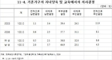 학교교육자들은 교육을 수행하면서 고객을 만족시켜야 한다. 이를 전문적인 용어로 Customer Satisfaction이라 한다. 그런데 고객은 누구를 나타내는가? 학생과 학부모들일 것이다. 최근 학교운영위원회 등 다양한 학부모 참여기회가 많아지는 만큼 교사들은 학부모에 대하여 잘 알아야 하겠다. 그런데 한국보건사회연구원에서 조사한 결과 가정에서 남편과 아내의 비교한 결과가 나오고 그중 자녀교육과 관련한 내용이 있어 도움이 되리라 본다. 즉 2006년 부부간 의사결정 권한중 「일상생활비 지출」은 65.3%가 부인이 결정하며, 이중「전적으로 부인이 결정」이 25.1%를 차지하였으며 「주택매매 및 이사」는 「부부공동 결정」이 74.7%로 가장 높았으며, 남편 결정이 14.2%, 부인결정이 11.2%로 나타으며, 「투자 및 재산증식」,「자녀양육 및 교육」도「부부공동 결정」이 각각 67.8%, 57.7%로 가장 높게 나타났다. 특히「자녀양육 및 교육」에 대한 의사결정은「부부공동 결정」다음으로 부인이 결정하는 비율이 39.2%로 남편결정(3.1%)보다 상당히 높게 나타났다. 이 비율은 2003년의 36%에 비하여 3.2%가 높아진 것이다. 남녀별로 보면 여성이 자녀교육에 있어 부인이 결정하는 비율이 40.6%로 가정에서 부인이 결정한다고 응답한 남성비율 27.4%에 비하여 높게 나타났다. 물론 남편과 아내가 공동으로 결정한다는 비율이 높게나타나고 있지만 남성의 자녀교육에서의 참여율이 매우 낮은 것임을 문제가 있다.자녀의 양육은 남성과 여성이 조화를 이루어야 한다. 학교에서도어머니회가 매우 종요하고 잘 운영되어야 하지만 아버지회도 적극 육성하여 제도적으로 아버지들이 자녀교육이 관여하도록 유도를 하여야 하겠다. 특히많은 직장에서 놀토가 실시되면서 어버지들이 시간적 여유가 많아 질 수 있다. 아버지들을 자녀교육에 더욱 많이 참여시키도록 하여야 하겠다.