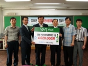 (주)진로 천안지점(지점장 장주호) 사장이 서령고 김기찬 교장에게 동문사랑캠페인 기금을 전달하고 있다. 7월 18일(금). (주)진로 천안지점(지점장 장주호)은 우리 서령고등학교(교장 김기찬)에 2008년 1학기 동문사랑캠페인 기금 4,020,000원을 전달했다. 충남 서북부지역을 관할하고 있는 (주)진로 천안지점은 기업 이윤의 사회환원활동이라는 캐치프레이즈아래 인재육성을 위한 장학사업을 지속적으로 펼치고 있다. 2006년 천안지역 불우독거노인 돕기 기금지원, 천안시 소년소녀 가장 돕기 행사, 홍성사랑 장학기금 조성, 2007년 청양사랑 장학기금 조성, 당진군 삽교천 바다사랑축제에 많은 금전적 지원을 해오고 있다. 이에 앞서 서령고는 지난 3월 13일 (주)진로와 동문사랑 캠페인 기금조성 협약서를 체결한 바 있다.
