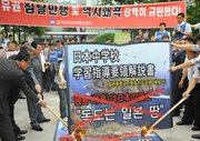 한국교총(회장 이원희)은 15일 일본의 독도 영유권 침탈 만행 기자회견을 주한 일본대사관 앞에서 개최했다. 이날 참석자들은 일본중학교 학습지도요령 해설서를 화형에 처하는 퍼포먼스를 가졌다. 교원, 시민 등 100여명이 모인 가운데 주한 일본대사관 앞에서 일본의 독도 영유권 침탈만행 및 역사왜곡을 강력히 규탄하고 있다. 일본의 독도 침탈 만행 규탄 기자회견을 가진 뒤 이원희 교총회장과 양시진 교총부회장이 항의서한을 전달하기 위해 주한 일본대사관으로 향하고 있다.