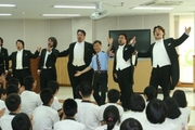 서호중학교, 찜통더위를 음악으로 녹여! “선생님, 감동 그 자체예요!”(3학년 김우년) “성악이라 딱딱하고 지루할 줄 알았는데 이번 공연은음악에 빠질수 있었어요.”(3학년 노혜지) 남성 성악가 8명이 서호중학교 음악실을 꽉 채웠다. 성악가 중 콧수염과 턱수염을 기른 사람은 무려 4명이다. 성악가들 앞에는 학생들 110여명과 선생님들 10명이 있다. 수업시간에는 그렇게 장난 놀고 딴청을 피더니만 시선 집중이다. 서호중학교(교장 이영관)은 7월 14일(월) 4교시, ‘W.M.F. 좋은 친구’들과 함께하는 아주 특별한 여행으로 “행복+행복 콘서트”를 음악실에서 열었다. 학생들은 기계음으로만 듣던 테너, 베이스, 바리톤의 생생한 음성을 직접 듣고 그들의 얼굴 표정까지 살피면서 클래식을 비롯한 다양한 음악의 진수를 만끽했다. 연주 곡목을 보면 케세라, 마티나타(아침의 노래), 목련화, 향수, 마법의 성, 동백섬, 뮤지컬 남태평양 중 ‘여자보다 귀한 것은 없다’, 오페라 유쾌한 미망인 중 ‘여자여자여자’, 총각타령, 우리들은 미남이다 등이다. 노래만 들려 준 것이 아니다. 성악가 박영욱은 진행을 하면서 음악해설을 맡았다. 처음 독창에서 학생들의 반응은 미미하더니 8명의 대인원이 무대를 꽉 채우니 열광의 무대가 되었다. 밖은 30도가 넘는 찜통더위가 계속되고 있지만 서호중학교 음악실은 앵콜과 박수소리로 무더위를 녹이고 있었다. 앵콜곡 ‘어머나’는 무대와 관객이 하나가 되었다. 3학년 전두희 학생은 “수업보다 훨씬 재미있었다”고 말했고 유신자 학년부장은 “우리 학생들이 음악 속으로 들어가 흥겨워하는 모습이 보기 좋았다”고 말했다. 이번 콘서트는 삼호아트센터(이사장 이윤희, 한독건설 대표)의 ‘찾아가는 음악회’ 일환으로 열렸는데 ‘W.M.F. 좋은 친구’는 음악을 통한 행복 전도사를 자칭하며 학교, 군부대, 복지시설, 시민공원 등을 직접 찾아 무료 콘서트를 열고 있다. 이윤희 이사장은 “중학교 공연은 처음인데 클래식에 거리감을 느끼고 어려워할까 걱정했는데 그런 우려를 말끔이 씻어주었다”고 말했다. ‘W.M.F.좋은 친구’는 11명으로 해외 콩쿠르 입상 경력과 음대 교수들로 구성된 프로 성악인들이다.