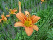 요즘 농촌들녘은 나리꽃이 지천입니다. 주로 참나리꽃으로 불리는 주황색 계열의 나리꽃이 산과 들에 만개해있답니다. 사진에 보이는 참나리는 '야생나리꽃들의 왕'이라고 불릴 정도로 화려한 자태와 외모를 가지고 있답니다. '깨끗한 마음'이 꽃말인 참나리는 도도하고 발랄한 자태로 지나는 길손들을 유혹한답니다. 반드시 하늘을 향해서 핀다고 해서 하늘꽃으로도 불리는 참나리가논둑길에 지천으로 피어있다. 길옆엔 천도복숭아가 탐스럽게 익어가고 있다. 비가 그친 소탐산의 오솔길