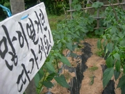 아파트 인근에 있는 일월(日月)저수지, 일부러 아니 시간을 내어 돌고 있다. 자연의 변화 감상하기가 즐겁고 건강관리 차 산보를 하는 것이다. 우리가 보는 자연, 하루하루가 다르다. 자연뿐이랴! 사람도 변하는 것이 아닌가 싶다. 저수지 산책로 옆 고추밭에 붙은 쪽지 하나가 시선을 끈다. "많이 열거던 따가세요!" 재치있는 표현이다. 작년에 붙은 문구는 '농약 살포'였는데….문구 하나로살벌함이 없어지고 살포시 미소짓게 만든다. 고추밭을 가꾸는 사람의 심성의 변화가 있어난 계기가 무엇인지 궁금하기도 하다.고추서리꾼들에 대한 미움과 원망을승화시키는 그 마음의 여유가부러운 것이다. 대개 이런곳에는 경고 문구가 붙어 있다. "제발 따가지 마세요!" "농작물에 손대지 마시오!" 등. '농약 살포'도 그 같은 경고의 일종이다. 농약을 뿌렸으니, 먹어 보았자 건강에좋지 않으니가져가지 말라는 뜻이다. 도심지에서 심심풀이로 농사를 짓는 작은 형수의 말씀에 의하면 이 같은 경고 문구는 통하지 않는다고 한다. 선량한 주민은 이런 문구 보고 가져갈 생각도 하지 않지만 도둑 심보를 가진 사람은 그래도 훔쳐간다고 한다. 왜, 자기가 먹는 것이 아니고 내다 팔기 때문에. "많이 열거던 따가세요!" 의미 심장한 문구다. 아직 많이 열리지 않았으니... 지금은 따가지 말라는 뜻이다. 열매가 많이 열리면 그 과실을 함께 나눌 터이니... 그 때까지 참고 기다려 달라는 뜻이다. 그 때까지 열매가 익는 것을 함께 지켜보자는 것이다. '많이'가 얼마만큼인지는 모르나....고추밭을 지키는 공동파수꾼이 되자는 것이다. 얼마나 재미있는 표현인가! 우리네의 삶, 각박함에서 벗어났으면 한다. 말 한마디, 문장 한 구절에도 여유를 담았으면 한다. 조금만 생각하면 충분히 실천할 수 있으리라고본다. 오늘 같은 월요일 아침 출근길에 나누는 인삿말. "이번 한 주도 행복하세요!" "월요일 힘차게 출발하세요!" "오늘 하루도 즐겁게 보내세요!" 우리 아파트 입구에서 경비원이 밝은 인삿말을 건네듯이. 산책길 고추밭에 붙어 있는 짧은 문구가 우리의 삶을 되돌아보며 미소짓게 하듯이. 남을 행복하게 해주어야 나도 함께 행복해지는 것이 아닌가 싶다. 그게 바로 더불어 사는 삶이다.