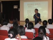 계산여자중학교(교장 김향자)는 6월 25일 오후 다목적실에서 100여명의 학생을 대상으로 시인 정호승 작가를 초청하여 문학 강연회를 가졌다. 정호승 작가는 ‘내가 사랑하는 사람’ 이라는 시가 중학교 3학년 교과서에 실린 시인으로 시집 외에도 어른들을 위한 동화집 등으로 순수한 서정성이 담긴 작품으로 유명하다. 강연 주제는 ‘시를 발견하는 기쁨’ 으로, 작가가 될 우연한 기회를 얻은 학창 시절 이야기로 학생들의 웃음과 공감을 얻었으며, 일상생활에서 시를 발견하는 기쁨을 작가가 지은 동시의 예를 들어 쉽고 친근한 말투로 하나하나 펼쳤으며 특히 시인의 자작시에 곡을 붙인 동요 ‘개똥’을 부르자 많은 여학생들이 환호를 지르며 박수를 치며 열광하는 분위기였다. 교과서에 수록된 시인 ‘ 내가 사랑하는 사람’에 나오는 그늘과 눈물을 소중하게 여겨 영혼을 살찌우는 보석이 되게 하라는 당부로써 강의는 끝을 맺었으며, 강의 내용을 퀴즈로 진행해서 시인의 친필이 들어있는 작품집을 증정하는 것으로 행사는 성황리에 막을 내렸다.