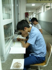 6월 16일(월) 늦은 밤. 때이른 무더위가 연일 계속되는 가운데 서령고 3학년 학생들이 복도에 모기향을 피워놓고 야간자율학습에 열중하고 있다.