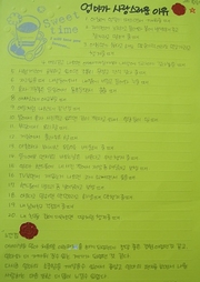 초록의 풀 냄새가 교실창문을 타고 싱그러운 모습으로 뚜벅뚜벅 걸어온다. 5월의 냄새이다. 5월의 냄새, 5월은 신록의 향기만 있는 게 아니다. 아이들의 순수하고 맑디맑은 미소도 있고, 세파에 주름살 깊게 패인 아버지 어머니의 자식들에 대한 사랑도 있다. 그러나 사람들은 종종 부모에 대한 사랑이나 관심을 잊은 채 살아간다. 늘 관심을 받고 있으면서도 관심을 못 받고 있다고 생각한다. 공기처럼 말이다. 사람이 생명을 유지하는데 가장 종요로운 것이 공기(산소)이면서도 우리는 그 공기의 소중함을 망각한 채 살아간다. 항상 곁에 있기 때문이다. 그래서인지 부모는 공기와 같은 존재가 아닌가 하는 생각을 하곤 한다. 아이들(학생)과 이야길 나누다보면 의외로 부모에 대한 안 좋은 감정들을 드러내는 아이들이 많음을 볼 수 있다. 그러면서 이렇게 말한다. ‘우리 엄마는 나 싫어해요.’ ‘우리 아빠하고 이야기 한 적이 거의 없어요. 혼내기만 해요.’ 엄마나 아빠가 사랑스런 이유 20가지를 써보자고 할 때도 아이들 몇몇은 노골적으로 투덜대기도 했다. 왜 엉뚱한 짓을 하려고 하여 우리들을 괴롭히려고 하느냐는 의미였다. 그런 아이들에게 한 번 써보고 다시 이야기하자고 설득했다. 그리고 방법을 예를 들어 알려주었다. 먼저 로 제목을 정하고 스무 가지를 쓸 것. 다음엔 엄마나 아빠에게 편지처럼 드리지 말고 꼭 읽어 드릴 것. 세 번짼 부모님의 소감이나 생각을 자필로 받아올 것. 그리고 마지막엔 읽어드리고 부모님의 소감을 받은 후의 자신의 느낌이나 생각을 간단히 적어올 것. 물론 엄마나 아빠가 안 계시는 경우를 생각하여 가족 중 한 사람을 정해서 쓰도록 이야기해 주었더니 호기심을 보이는 아이들과 투덜대는 아이들의 목소리로 시끌벅적하다. “혹시 엄마나 아빠 한 사람에게 써 드리면 질투할지 모르니 일단 엄마나 아빠를 너희 방으로 안내해. 그런 다음 음악을 쫘~악 깔고 글을 읽어드려 보렴. 분위기 나겠지.” 그러자 여기저기서 ‘부끄러워요’ ‘창피하게 어떻게 그래요.’ ‘멀리 떨어져 함께 살지 않으면 어떡해요.’ 하는 등의 질문이 쏟아진다. 떨어져 사는 경우엔 전화를 통해 읽어드리고 부모님의 소감을 들은 다음 적게 했다. 가장 많이 나온 말, 우리 엄마니까, 아빠니까 사랑스럽다 그럼 딸들이 바라보고 사랑스럽다고 생각한 엄마 아빠의 모습은 어떤 것일까? 전혀 새로운 것이 없는 일상적인 것들이었다. 아빠의 코고는 소리, 엄마의 잠꼬대 하는 소리, 엄마의 뱃살과 주름살마저 사랑스럽다고 이야기한다. 몇몇 아이들이 쓴 글과 엄마의 소감을 간단히 살펴보자. 엄마의 사랑스러운 점 20가지 1.엄마의 주름진 웃는 모습이 사랑스럽다. 2.엄마의 오겹뱃살이 사랑스럽다. 3.엄마의 흰머리가 사랑스럽다. 4.엄마의 코고는 소리가 사랑스럽다. 5.엄마의 까칠한 발이 사랑스럽다. 6.엄마의 따뜻한 품이 사랑스럽다. 7.엄마의 시끄러운 잔소리가 사랑스럽다. 8.엄마의 질펀한 궁딩이가 사랑스럽다. 9.엄마가 빨래할 때 사랑스럽다. 10.엄만 늘 사랑스럽다. …… 등등 엄마의 사랑스러운 점 20가지 1.날 태어나게 해줘서 사랑스럽다. 2.우리 엄마는 설거지하는 모습이 사랑스럽다. 3.아빠랑 장난치는 모습이 사랑스럽다. 4.엄마가 나한테 시비거는 모습이 사랑스럽다. 5.엄마의 삐지는 모습이 사랑스럽다. 6.엄마는 아파도 티 안내면서 자식은 아프지 말라며 기도하시는 모습이 사랑스럽다. 7.엄마의 춤추는 모습이 사랑스럽다. 8.야단치고 미안하다는 모습이 사랑스럽다. 9.엄마가 ‘우리 딸~’ 하고 내 엉덩이 두드려줄 때 사랑스럽다. 10.하나밖에 없는 우리 엄마이기 때문에 사랑 스럽다. ……등등 딸들이 당신들을 사랑하는 이유를 듣고 난 엄마들의 반응은 고마움과 기특함과 감동이 대부분이었다. 그리고 아이들도 무척 좋아했다. 살아오면서 한 번도 엄마에 대한 소중함이나 사랑을 생각지 않고 투정만 부렸다는 아이들도 이번 글을 쓰면서 그 사랑과 소중함을 느꼈다고 말한다. “엄마는 싫고 버리고 싶은 것들까지 사랑스러워 해주는 딸이 너무 이쁘구나. 그것도 모르고 늘어나는 주름을 보며 우울해 하곤 했는데 … 딸! 너무 고마워. 그리고 너무 사랑해.” “항상 철부지인줄 알았는데 엄마의 단점까지도 사랑스럽다 표현 해주는 우리 딸이 더욱 사랑스럽구나. 엄마가 감격 또 감격이다. *^^*” “작년과 다른 이벤트에 우리 딸이 기특하고 감동스럽구나. 엄마는 20가지라도 고맙고 사랑한다.” “우리 딸이 많이 컸구나. 엄마는 너의 모든 것이 사랑스러워. 너무너무 사랑해 우리 딸.” “이걸 쓰면서 내가 엄마를 많이 사랑하는 걸 느꼈어요. 엄마의 가슴이 찡하다고 했을 때 눈물이 나오려고 했었는데…아빠랑 친하지 않는데 아빠한테도 써드려야겠어요.” “우리 엄마가 우리 엄마라는 사실이 너무 감사하고 행복하다. 나는 세상에서 가장 행복한 딸이다.” “ 처음엔 부끄러웠지만 엄마가 흐뭇해하시고 감동받으신 거 보고 너무 기뻤다. 그런데 아빠가 삐지셨다.” “늘 가까이 있어서 엄마의 소중함을 느끼지 못하고 그냥 엄마라는 생각밖에 없었는데 엄마의 사랑스러움을 찾다보니 모든 게 
