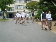 지진 대피 안내방송이 나가자 학생들이 급히 교실에서 빠져나오고 있다. 중국 쓰촨성 지진발생으로 그 어느 때보다도 지진에 대한 관심이 고조되고 있다. 특히 이번 중국 지진에서 눈에 띄는 점은 학교에 대한 피해가 막대하다는 것이다. 학교는 많은 학생들이 밀집해 생활하는 공간으로 지진 등이 발생할 경우 그 피해는 엄청날 수밖에 없다. 따라서 평소 각종 재난에 대한 대비가 철저해야할 것이다. 이러한 점을 자각한 우리 서령고에서는 사전 예고 없이 지진에 대한 대피 전격 훈련을 실시했다. 지진 대피 훈련을 완료한 모습 10분간의 지진 대피 훈련을 마친 학생들이 교실로 돌아가고 있다.