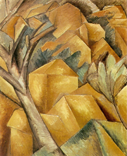 “미라보 다리 아래 센강은 흐른다/우리들의 사랑을/나는 기억해야만 하는가/기쁨은 항상 고통 뒤에 왔었다.” 이렇게 시작되는 기욤 아폴리네르(Guillaume Apollinaire, 1880~1918)의 시 ‘미라보 다리’는 아마도 현대 프랑스 시 가운데서 가장 널리 대중들이 읊조리는 비가(悲歌)일 것이다. 그러나 우리는 아폴리네르를 단지 잃어버린 시간과 덧없음의 회환에 잠겨 안타까이 회상하는 현대적 애가의 시인으로만 취급해서는 안 될 것이다. 그가 ‘쉬르레알리즘’(초현실주의)이라는 용어를 역사상 처음으로 만들어낸 시인이며, ‘큐비즘’(입체주의)이라는 명칭도 최초로 만들어낸 전위적 미술비평가였음을 주목해야 한다. 특히 입체파 운동의 선두에서 이론적 대부 역할을 한 ‘새로운 에스프리’의 기수였음을 기억해야 할 것이다. 아폴리네르는 ‘미학적 명상-입체파 화가들’(1913)에서, 입체주의가 ‘모방의 예술’이 아니며 새로운 경지에까지 도달하려는 ‘개념의 미술’이라고 주장한다. 그리고 그것은 또한 ‘인식된 사실 또는 창조된 사실을 표현함으로써 3차원의 모습을 보여줄 수 있는’ 새로운 미학이라 강조한다. 그는 대표적인 입체파 화가로서 조르주 브라크(Geroges Braque, 1882~1963)를 내세우며 ‘시각적 사실이 아니라 지각적(知覺的) 사실로부터 빌려온 요소들로 새로운 전체를 그리는’ 창조적 조형예술의 혁명을 이루어낸 화가라고 높이 평가한다. 브라크의 ‘에스타크의 집들’ 또는 ‘에스타크의 나무들’(1908, 사진) 같은 일련의 에스타크의 풍경화들에서 우리는 색채가 단순해지고 형태가 기하학적 구조로 수렴되어 새로운 아름다움을 창출해내는 독특한 세계를 만날 수 있다. 이러한 브라크의 입체주의적 미학의 새로움에 대해 깊은 예술적 동질성을 느낀 아폴리네르는 1913년에 간행한 첫 시집 ‘알코올’을 통해 입체주의적 기법의 시적 형상화를 성공적으로 보여준다. 감각과 기억이, 꿈과 현실이, 과거와 현재와 미래가 아무런 원근법적 질서도 없이, 그리고 겉으로 드러난 논리적 관계도 없이 동일한 평면상에 병치되어 있는 ‘변두리’ 같은 작품은 그 좋은 예라 하겠다. 이는 마치 브라크의 파피에 콜레가 보여주는 바와 같은 자연의 질서와는 다른 질서를 갖추고 있는 이질적인 여러 마티에르들의 병치 또는 편재의 구성을 떠올리게 한다. 이 같은 파격적인 이미지 나열의 수법은 아폴리네르의 두 번째 시집이며 마지막 시집인 ‘상형시집’(1918)에 이르러서는 물체의 형태를 인쇄술의 배열에 의해서 재현하는 좀 더 파격적인 실험으로 발전한다. ‘비수에 찔린 비둘기와 분수’ 같은 작품은 ‘상형시집’의 입체파적 특징을 잘 보여주는 대표적인 것이라 할 수 있다.