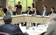 7일 교총 회장단-시.도교총회장 연석회의에 참석한 성과후생관 김동극 국장이 최근 연금보도를 해명하고 교총의 발전위 참여를 요청하고 있다. 박용조 수석부회장은 연금보도와 관련해 "경력자 별로 손익 시뮬레이션 결과를 상세히 내놔야 한다"고 강조 하고 있다. 김동극 경북교총 회장이 최근 연금보도와 관련해 학교 일선에서는 장기 재직자들의 퇴직소득에 큰 손해가 발생 할 것을 염려하고 있다는 현장의 목소리를 전달하고 있다. 성과후생관 김동극 국장은 "정부안을 만들 때 공무원노조, 단체와 충분히 협의하겠다"며 교총의 연금제도발전위원회에 참여를 요청했다.