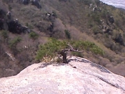 - 고당봉의 이면에서 만난 기암들의 함성 화창한 토요일 오전. 선배와 함께 가기로 한 산행길이 즐겁다. 그것도 부산의 진산이라고 할 수 있는 금정산을 오르는 산행이기에 더욱 즐겁다. 부산에 많은 산이 있지만 누가 뭐라 해도 금정산은 부산의 아버지 같은 산이다. 그 금정산을 오른다기에 발걸음도 가볍게 지하철을 탔다. 조금 늦게 도착한 선배. 간단한 수인사를 나누고 바로 산행 길로 직행한다. 오늘의 등반코스는 고당봉의 뒷면으로 올라가는 길이다. 보통 금정산 고당봉으로 올라가는 코스는 범어사를 지나 금정산 북문 광장을 통해 올라가는 것이 일반적이다. 이 코스가 가장 무난하며 사람들이 접근하기에도 가장 좋다. 그러나 금곡동 호포역에서 출발하여 고당봉으로 올라가는 등반코스는 사람들이 잘 타지 않는 코스이다. 그래서 올라가는 길도 한적하다. 토요일인데도 지나가는 사람들이 거의 없다. 고요한 산행을 원하는 사람들에겐 안성맞춤이다. 호포역에서 올라가는 등반코스는 한적함만 있는 것이 아니다. 그 곳에는 범어사를 통해 올라가는 등반코스에선 맛볼 수 없는 기묘함이 서려 있다. 바로 정상 근처에서 만나게 되는 각종 기암괴석들이 그것이다. 참, 신기하게도 이 기암괴석들은 일명 ‘하늘의 문’이라 불리는 곳을 통과해야만 본격적으로 만날 수 있다. 완만하면서도 편안한 산행을 1시간 정도 하다 보면 양산과 김해, 낙동강을 한 눈에 굽어볼 수 있는 너럭바위를 만나게 된다. 바위가 어찌 그리 크고 넉넉한지. 이곳에서 간단한 안주와 막걸리로 목을 축이는 기분이란 직접 겪어보지 않고서는 모를 것이다. 또한 이 너럭바위에서만 볼 수 있는 키 작은 소나무의 신기함은 또 어떻고. 너럭바위의 틈새에 자리 잡은 흙에 뿌리를 내린 그 모습은 때론 애처롭기까지 하다. 너럭바위를 지나면 또 하나의 기묘함과 마주친다. 널따란 바위 밑에 홀로 거처를 마련한 채, 백구 1마리를 키우고 있는 노승을 만나게 되는 것이다. 법당도 없고, 부처님도 없다. 천막을 치고 합판으로 벽을 만든 허름한 스님의 거처는 연민마저 느끼게 한다. 그나마 불 밝힌 양초 두 세 개가 차려진 너럭바위 밑이 법당의 분위기를 주니 조금은 다행이었다. 이 소박한 법당에 시줏돈 정성스레 올리고 진지하게 절하는 등산객들을 바라보는 노승의 미소는 4월의 햇살 아래 밝게 빛나고 있었다. 그 모습을 보며 아담한 유채꽃밭을 어슬렁거리는 백구의 흰 털이 눈부시다. 스님과 백구에게 간단한 작별을 고한 후, 조금만 올라가면 바로 만나게 되는 ‘하늘의 문’. 신의 조화인지, 자연의 장난인지, 아님 거인의 노동인지 길쭉한 바위들 위에 얹혀 진 기암 지붕. 참 알 맞춤하게 하나의 문을 만들어놓았다는 감탄이 절로 나온다. 그 문 사이에 들어서니 어디선가 일진광풍이 휘몰아친다. 어쩜 이리 시원할까. 조금만 앉아 있어도 절로 땀방울이 마른다. 태초에 만들어진 문일까, 아님 태초의 시간보다 더 오래 전에 만들어진 문일까? 자연의 위대함 앞에 그저 인간은 초라해질 뿐이다. 하늘의 문을 나서니 본격적인 암벽 등반이 시작된다. 날 정복해봐라 하며 시위하는 괴석들. 쭉쭉 뻗은 몸매를 자랑하는 바위도 있고, 웅장함을 아낌없이 보여주는 바위들도 있다. 그뿐인가. 바위 능선을 타고 넘으니 갑자기 등장하는 우람한 남근석. 허허, 아무리 봐도 절묘하게 닮았구나. 휘늘어진 모습이 어찌 저리도 비슷한고. 이 기암괴석을 지나려면 적어도 대 여섯 번의 로프를 잡아야 한다. 로프를 잡고 힘차게 땅을 박차야만 바위들을 정복할 수 있다. 솔직히 상당한 체력이 요구되는 코스이기도 하다. 그래서 다리나 몸이 약한 사람들에겐 굳이 권하고 싶지 않은 코스이기도 하다. 그러나 힘들게 올라간 만큼 그 보람은 너무나 크다. 기암괴석의 경치도 일품이려니와 확 트인 조망은 가히 압권이기 때문이다. 금정산을 좋아하는 사람이라면 이 코스를 방문해보기를 적극 추천하는 바이다. 기암괴석을 다 통과하면 이제 고당봉까지는 편안한 산행길이다. 예전의 낭만을 앗아간 인공다리가 거슬리긴 하지만, 진달래가 활짝 피어있는 정상의 모습은 언제 봐도 낭만적이다. 정상에 서서 잠시 사방의 경치를 구경하면 그 상쾌한 기분이란 이루 말할 수 없다. 그리고 정상 밑에 위치한 금 샘의 기이한 모습 또한 잊을 수 없는 금정산의 추억이다. 아무리 장마가 져도 마르지 않는다는 금 샘이라. 우스개 소리로 등산객들이 늘 물을 부어주기 때문에 바위 위의 물이 마르지 않는대나 어쨌다나. 호포역에서 만난 금정산 산행길은 금정산의 또 다른 매력을 담뿍 던져주는 매력적인 코스였다. 그래서 적극 추천하는 코스이다. 반드시 가보시도록!