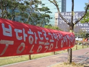☞ 서울의 한 대학교에 출장갈 일이 있었습니다. 교정을 들어서니 화사한 봄 기운처럼 젊은 대학생들의 열기를 느낄 수 있었습니다. 그런데 교정 곳곳에 걸린 현수막이 온통 '등록금'과 관련된 내용이었습니다. 요즘 학생들에게 가장 큰 관심사는 아무래도 등록금인가 싶습니다. ☞ 건물을 신축하느라고 등록금을 올렸다면 아예 건물을 사용하지 않겠다고 하는군요. ☞ 건물 전면에 붙어있는 등록금 인상 반대 현수막을 바라보는 학생의 뒷모습이 웬지 허전한 것 같습니다. ☞ 물가상승률을 훨씬 뛰어넘는 등록금 인상률(9%)을 확인할 수 있습니다. ☞ 등록금 인상에 따른 학생들의 분노를 확인할 수 있습니다. ☞ 등록금에 대한 학생들의 생각이 갖가지 현수막에 잘 나타나 있습니다. ☞ 등록금 인상과 관련하여 '패러디 포스터' 대회가 열렸네요. 입상자들의 작품에서 학생들의 재치를 엿볼 수 있습니다. ☞ 학과 사무실에 붙어있는 그림입니다. 엄청남 등록금에 주눅든 학생들의 모습이 떠오릅니다.