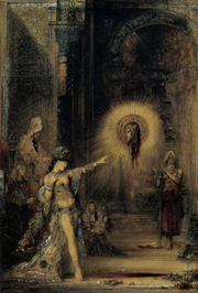 자연주의 문학의 교리를 충실히 반영한 소설 ‘마르트, 어느 창녀의 이야기’(1876) 등을 써서 졸라의 문하생으로 출발했던 조리스-카를 위스망스(1848~1907)는 1884년 특이한 상징주의 소설 ‘거꾸로’를 발표함으로써 데카당적 문학운동의 선두 주자가 된다. 이는 졸라의 입장에서 보면, 용서할 수 없는 커다란 ‘배반’이었으나, 초자연의 세계로 한사코 도망치고자 했던 위스망스로서는 어쩔 수 없는 필연적 ‘개종’이었다. 위스망스가 창조한 ‘거꾸로’의 주인공 데 제생트는 파리에서 멀리 떨어져 있는 퐁트네에 자신만의 성을 마련하여 거기서 낮에 잠자고 밤에 깨어나 활동한다. 그는 세상 사람들의 습관과는 완전히 ‘역행하는’ 생활을 하며 인공적인 것에 대한 자신의 열정에 빠져 든다. 그의 조그만 미술관에는 환상적이고 기이한 상상력으로 만들어진 작품들, 즉 오딜롱 르동, 고야, 모로 등의 그림이 소장되어 있다. 위스망스는 자신이 특히 좋아하는 상징주의 화가인 귀스타브 모로(1826~1898)의 두 작품, 유화 ‘살로메’와 수채화 ‘현신’(1876, 사진)을 보고 느낀 감동을 그대로 소설 ‘거꾸로’ 속에 옮겨놓는다. 화가의 이름과 작품명을 실명으로 썼다는 사실만으로도 위스망스가 모로에게 얼마나 깊이 매료되어 있었는지를 짐작케 한다. 위스망스는 살로메의 모습을 ‘거꾸로’ 속에서 이렇게 묘사한다. “그녀는 단지 엉덩이를 음탕하게 놀려서 한 늙은이에게서 욕정과 발정의 탄성을 이끌어낸 무희, 젖가슴을 출렁이고 배를 흔들며 허벅지를 떨어대어 왕의 기력을 부수고 의지를 녹여버린 무희였던 것만은 아니었다. 이를테면 그녀는 파괴할 수 없는 음탕함을 상징하는 여신, 불멸의 히스테리의 여신, 자신의 살집을 뻣뻣하게 만들고 근육을 단단하게 하는 경직증에 의해 모든 여자 중에서 선택된 저주받은 미의 여신이 되었던 것이다.” 소설의 주인공 데 제생트, 즉 위스망스는 자신이 꿈꾸어 온 살로메가 모로의 작품 속에서 ‘초인적이고 기이한’ 모습으로 실현되어 있음을 보고 열렬한 예술적 교감에 빠져든다. 모로가 그린 살로메의 그림이야말로, 그 어떤 복음서의 저자도 설명해주지 않은 살로메의 참다운 매력을 구현해 보여준 가장 감동적인 작품으로 그에게 다가온 것이다. 1998년 10월부터 1999년 1월까지 파리 그랑팔레 미술관에서 개최된 모로의 100주기 기념 특별 회고전은 이미 알려진 상징주의적 경향의 그림들뿐만 아니라 추상적 화풍의 작품들도 체계 있게 정리하여 보여줌으로써 현대 추상미술의 선구적 실마리를 찾을 수 있게 한 계기가 되었다. 위스망스와 모로, 평생 똑같이 독신자의 삶을 살았던 이 두 예술가는 당대의 유행사조에 휩쓸리지 않은 채, 초자연적 비전의 세계를 향해 끊임없이 속악한 현실로부터의 탈출을 시도한 외로운 수도사라 할 수 있다.