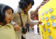 여기 네 이름표가 있네... 전국적으로입학식이 치러진 가운데 3일 서울 응봉초(교장 원종만)에서한 신입생 학부모가 반별로 표시된 자녀의 이름표를찾고 있다. 입학 축하 목걸이 처음으로 학교생활을 시작하는 신입생들에게 6학년 학생들이 사탕으로 만든 입학 축하 목걸이를 걸어 주고 있다. 원종만 응봉초 교장 선생님이 입학생들과 일일이 손을 잡으며 입학을 축하해 주고 있다. 입학생과 학부모들이 입학식이 끝난뒤 선생님과의 첫 대면에서 담임 선생님으로 부터 등교에 필요한 사항들을 설명 듣고 있다.