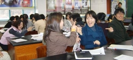 혁신중점구현을 통한 행복한 학교 만들기를 위하여 노력하는 제물포중학교(교장 김석태) 12.21일 본교 다목적실에서 학교혁신 추진의 일환으로 전체 교직원을 대상으로 학부모 나르미를 초청 「웃음치료」라는 주제로 연수를 실시했다. 연수의 내용은 실제로 교실에서 수업하면서 학생들과 함께 활용할 수 있는 여러 가지 웃음치료 방법으로 악수하기, 얼굴근육 풀기, 가위바위보에서 지는 사람은 웃기, 살인미소지어보기, 책상을 치면서 박장대소하기, 카드를 이용하여 이루고 싶은 꿈의 나이 알아맞히기 등 시종일관 밝고 즐거운 분위기로 진행이 되었다. 특히 이번 연수를 통해 학생들에게 밝은 미소를 주고, 온화함과 편안함을 주는 웃는 얼굴로 친절하게 다가가며, 웃음을 통해서 학생들에게 꿈과 희망을 주는 좋은 선생님이 될 것을 다시 한번 깨닫는 좋은 기회가 되었다.