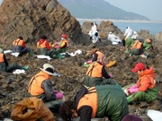 사상 최악의 원유 유출 사고로 천혜의 비경을 자랑하던 태안반도 일대가 검은 기름으로 뒤덮였습니다. 사람들의 손길을 애타게 기다리던 해안에서 자원봉사자들이 흡착포를 이용해 검은 재앙을 닦아내고 있습니다. 절망을 이겨내는 가장 효과적인 방법은 바로 사랑과 관심입니다. 지난 12월 12일 서산시 대산읍 통천포 해안에서.