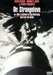 블랙코미디를 사전에서 찾아보면 ‘끔찍하거나 병적인 풍자로 된 희극’이라고 설명되어 있다. 다른 말로 하자면 웃음을 주긴 주되 뭔가 의미 있는 메시지를 던지는 코미디란 뜻이다. 블랙코미디에서 가장 빈번하게 등장하는 극 중 장치는 ‘풍자’이다. 인물의 행동이나 대사를 통해 특정한 사건이나 역사적 배경을 냉소적으로 표현하는 것이다. 특히 정치나 사회풍자적인 요소를 강하게 지니고 있는 것이 특징이다. 스탠리 큐브릭이 1964년 초에 만든 ‘닥터 스트레인지러브’는 블랙코미디가 무엇인지, 블랙코미디가 어떠해야 하는지를 여실히 보여준 명작이라 할 수 있다. 원래 이 영화는 1963년도에 개봉할 예정이었다고 한다. 그런데 공교롭게도 그 해에 케네디가 암살되는 바람에 개봉이 늦춰지게 되었다. 아이러니하게도 큐브릭이 이 영화를 만든 계기가 ‘쿠바 미사일 위기’때문이었는데, 이 미사일 위기는 케네디의 단호한 태도로 인해 일단락되었었다. 케네디는 큐브릭에게 영화사에 길이 남을 명작의 소재를 제공한 후에 생명의 끈을 놓았던 것이다. ‘닥터 스트레인지러브’의 극중 무대는 크게 보아 세 부분으로 나뉘어 진다. 하나는 편집광적인 좌익 혐오증에 걸린 공군사령관 리퍼와 보좌관인 맨드레이크 대령이 갈등을 일으키는 사령관 실이다. 또 하나는 리퍼의 핵공격 명령을 저돌적으로 수행하는 B-52 전략폭격기 내부이다. 그리고 나머지 하나는 대통령과 장군, 고위 관료들이 모인 전략상황실이다. 영화는 세 부분에서 진행되는 스토리를 교차적으로 보여주면서 핵전쟁이라는 무거운 주제를 지극히 풍자적으로 묘사한다. 먼저 이 영화는 전형적인 희극의 문법을 보여주고 있다. 희극의 특징은 정상적인 상황을 비정상적으로 비틀어버리는 것이다. 공산주의에 대한 광기어린 망상에 빠진 리퍼사령관은 순전히 혼자만의 의지로 소련에 핵공격을 가하라는 명령을 내린다. 이는 지극히 비정상적인 상황이다. 현실에서 일개 공군사령관이 독자적으로 핵공격을 하기란 불가능해 보인다. 그러나 큐브릭은 이런 비정상적인 상황이 도래할지도 모른다는 개연성을 이 영화를 통해 충분히 보여주었다. 적어도 영화자체만으로 보면 일개 공군사령관의 핵공격 명령은 가능해 보인다. 여기에 이 영화의 희극적 요소가 극명하게 드러나는 것이다. 대통령이 주재하는 전략상황실도 사정은 다르지 않다. 겉으로 보면 대통령은 지극히 합리적이면서 냉정하게 사태를 해결하고자 노력한다. 그러나 실상 그는 군 장성에게 휘둘리는 나약한 허수아비일 뿐이다. 자신이 승인한 “R”작전에 의해 이런 상황이 도래하였음을 뒤늦게 안 대통령. 그는 합동참모장인 벅 터지슨의 “기왕에 이리 된 거 대대적인 핵공격을 감행하자”는 주장에 갈등하는 모습을 보이기도 한다. 터지슨은 리퍼사령관의 복사판일 정도로 좌익혐오증에 사로잡힌 전쟁광이다. 그는 자본주의와 자유주의의 수호자를 자처하는 리퍼사령관과 동일한 사고를 갖고 있다. 그러나 실상 두 장성은 지독한 파시스트이자 강박관념에 사로잡힌 군인일 뿐이다. 큐브릭은 이 두 인물을 통해 관료주의와 편협한 사고가 얼마나 위험한지, 얼마나 우스꽝스러운지 잘 보여주고 있다. 그리고 마지막에 등장하는 나치 출신의 과학자 스트레인지 러브 박사의 광기 또한 빼놓을 수 없는 희극적 요소이다. 그는 소련이 미국의 핵공격에 맞서기 위해 만든 “최후의 병기”에 대한 개념을 최초로 만든 사람이다. 기계팔과 휠체어에 의지하는 러브 박사는 인류가 살아남기 위해서는 수 백 미터의 갱도 속에 들어가야 한다고 주장한다. 남자1명에 여자 10명이라는 비정상적인 가족 구조를 유지하면서 100년 정도 땅 속에 살면 인류는 다시 번성할 것이라고 말한다. 큐브릭은 이 영화를 통해 무엇을 보여주고자 했을까? 아마 그가 의도한 것은 인간 사회의 부조리한 상황일 것이다. 그리고 그 부조리한 상황을 수습하는 과정에서 좌충우돌하는 인물들의 우스꽝스런 모습일 것이다. 그는 관료주의와 편협함에 사로잡힌 권력자들을 냉소적으로 그려내고 있다. 핵전쟁이라는 초유의 사태에서도, 인류 공멸의 위기 속에서도 반공사상에 사로잡힌 광기를 조롱하고 있는 것이다. 큐브릭의 이런 조롱은 사령관의 정신 나간 명령을 저돌적으로 수행하는 폭격기 조종사들을 통해서 그 정점을 달리게 된다. 모든 통신수단을 폐쇄하고 오로지 핵폭탄을 소련 기지에 퍼붓겠다는 충성심으로 뭉친 그들에게서는 그 어떠한 융통성도 발견할 수 없다. 그들은 단 한발의 핵폭탄을 떨어트리기만 하면 된다. 사령관의 명령이 곧 조국의 명령이라고 생각하는 그들에게서 유연함을 발견하기란 어렵다. 전략 폭격기 내에서 벌어지는 일련의 희극적인 요소들 -가령, 포르노 잡지를 보면서 비행하고 비상품 목록에 콘돔과 스타킹이 있다든지 하는 것들 - 또한 빼놓을 수 없는 풍자적 장치이다. 인류를 멸망시킬지도 모를 비행기에서 벌어지는 코미디란 그 얼마나 유치찬란한가 말이다. 한편으론 우스꽝스럽고 또 한편으론 위태로움을 간직한 전략폭격기가 소련 땅으로 날아가는 동안, 대통령은 소련 서기장