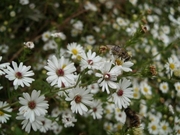 오늘아침 소탐산 양지녘에서 찍은 야생화입니다. 일벌 두 마리가꽃에서 열심히 꿀을 따고 있었습니다. 사람이 다가가도 날아갈 생각을 하지 않는 것으로 보아, 아마도환상적인 꽃향기에 취해 기절한 듯 싶었습니다. 꽃도 예쁘고 향기도 참 좋았습니다. 이름을 기억하고 싶어 인터넷식물도감을 찾아보았더니 '미국쑥부쟁이'라고 하네요. 북아메리카가 원산이고 우리나라엔 1970년대에 들어왔으며, 지금은 전국의 산야에 골고루 퍼져 거의 우리꽃화한 식물이랍니다. 꽃술이 붉은 것과 노란 것 두 종류가 있는데 제 개인적인 취향으론, 붉은 것이 더 예뻤습니다.