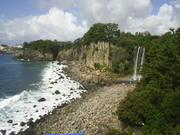- 불로초의 전설이 서린 정방폭포에서 영화 엔 인상적인 폭포 하나가 나온다. 바다와 맞닿은 곳에서 웅장하게 내리 꽂히는 그 폭포는 제주도의 3대 폭포 중 하나인 ‘정방폭포’이다. 천지연, 천제연 폭포와 더불어 정방폭포는 제주도 여행 시 필수 코스일 정도로 유명한 폭포다. 우리나라에서 유일하게 바다로 직접 떨어지는 폭포로도 유명하다. 높이 23m, 너비 8m, 깊이 5m의 못을 가진 이 폭포는 정방하포라고도 불리며 제주도 12경승지인 영주 10경의 하나이다. 정방폭포는 한라산을 등진 채 제주도 해안의 울울창창한 녹음을 끼고 있어 보는 이들에게 경탄을 자아낸다. 천지연 폭포와 천제연 폭포가 남성적인 웅장미를 자랑한다면 정방폭포는 여성적인 우아미를 가지고 있다. 또 바다와 어우러진 경치가 자못 신비로운 곳이다. 바다 위에 작은 조각배를 띄워 이 폭포를 바라본다면, 수려한 물줄기가 뒤쪽의 한라산과 오묘하게 결합된 경치를 즐길 수 있다. 하여, 정방폭포를 보지 않고서는 제주의 아름다움을 즐겼다고 감히 말하지 못할 것이다. 제주공항에서 서귀포시로 방향을 잡은 후, 성산·남원 방향으로 가면 그 누구라도 정방폭포를 만날 수 있다. 매표소를 지나 급경사 진 계단을 따라 내려가면 귀청을 찢는 듯한 굉음이 해안가에서 들려온다. 중간의 전망대에서 바다 쪽을 바라보니, 에서 보았던 장면이 그대로 눈에 들어와 박힌다. 어쩜 저리도 절묘한지! 한쪽에는 비취빛을 자랑하는 바닷물이요, 또 한쪽에는 은 조각이 사방에 날리는 폭포수라. 더군다나 그 폭포수가 바다로 바로 흘러가니 도원 선경이란 바로 예를 두고 하는 말이다. 북두칠성의 바가지로 저 물을 쏟아 붓는지, 아니면 금빛 양동이로 천수(天水)를 받아 한꺼번에 쏟아 붓는지 폭포수는 천상의 소리를 내며 아래로 내리 꽂힌다. 그 수려하게 흘러내리는 물줄기 사이로 너무나 뚜렷하게 보이는 오색 무지개! 폭포수가 내려오면서 바람을 만나 물 조각들이 사방에 날리고, 그 조각들이 은빛 찬란한 햇살과 어우러져 빛의 향연을 벌이는 것이다. 낮에 보는 무지개는 색감이 무척 화려하다는 특징이 있다. 가까이 가면 그 무지개는 어느새 시야에서 사라지고 만다. 그러나 멀리서 보면 자신의 아름다운 몸매를 유감없이 드러낸다. 환상이런가, 꿈일런가 그도 아니면 신기루인가. 무지개는 옥빛 구슬을 품고 하늘로 올라가는 용의 비늘처럼 생생하다. 아래에서 불어오는 해풍이 연신 물기둥을 때리면 무지개는 물 조각들에 자신의 색깔을 선명히 새긴다. 자연의 조화란 이다지도 깊은 감명을 주는 것이다. 정방폭포에는 그 유명한 진시황과 관련된 전설 하나가 전해져 온다. 진시황의 신하인 서불이 동남동녀 오백명을 데리고 이곳으로 불로초를 캐러 왔다는 것이다. 그러나 실상은 서불이 폭군 진시황의 곁을 떠나고 싶어 일부러 제주도에 불로초가 있다고 속였다고 한다. 진시황은 서불의 말을 믿고 온갖 보물과 인원을 제공하였고, 서불은 이 재물들을 갖고 제주도로 유람을 온 것이다. 그는 실컷 제주의 절경을 구경한 다음, 정방폭포의 절벽에 ‘서불과차’라는 문자를 새겼다고 한다. 그리고는 서쪽으로 돌아갔는데, 여기에서 서귀포(西歸浦)라는 지명이 유래했다고 한다. 정방폭포 아래에는 흑 빛의 돌들이 가지런히 놓여 있어 앉아서 쉬기에 무척 좋다. 그 돌 위에 앉아 있노라면 폭포수가 내리면서 생기는 바람이 온 몸을 시원하게 적신다. 정방폭포는 수량이 많을 때는 절벽 전체가 물줄기로 변한다. 마치 거대한 하나의 물기둥이 절벽에 바투 붙어 있는 모습을 연출하는 것이다. 수량이 적을 때는 물줄기가 두 줄기로 갈라져서 쌍둥이 물기둥을 시원스레 보여준다. 정방폭포를 두고 돌아서는 발걸음은 무척 아쉬울 것이다. 그래서 사람들은 저마다 기념촬영을 하느라 분주하다. 폭포의 웅장함을 프레임에 담아가야 한다는 의무감에 사로잡혀서. 그러나 폭포의 진정한 아름다움을 담는 것은 기억 속일 것이다. 기억 속에 담아가는 정방폭포의 모습이야말로 진정한 아름다움이 될 터이다.
