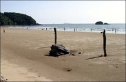 충남 태안에 자리한 안면도는 개인적으로 서해안에서 제일 좋아하는 섬이라 매년 1~2차례 다녀오곤 한다. 좋은 곳이 너무 많아서 필자의 안면에 내내 웃음을 짓게 만드는 명소 중의 명소다. 그중 3년전 영화 [내남자의 로맨스]로 인해 새롭게 알게된 두여해수욕장은 안면도의 10여 개 해수욕장 중 최고로 꼽을 만하다. 아름답기야 할미.할아비바위의 낙조로 유명한 꽃지해수욕장을 따라갈 수 없지만 해수욕을 즐기기에는 두여해수욕장만한 곳이 없다. 서해안고속도로 홍성나들목을 빠져나와 29번 국도를 타고 해미를 지나 서산간척지의 AB방조제를 건너면 원청삼거리이다. 이곳에서 좌회전하여 77번 국도를 타고 안면도 방면으로 간다. 안면대교를 건너 첫 번째 삼거리에서 백사장항 방면으로 우회전한 후 다시 교차로에서 좌회전해 해안관광도로를 따라 가다 안면해수욕장 다음에 나오는 해변이 두여해수욕장이다. 이곳은 영화 [내남자의 로맨스]에서 두 주인공인 현주(김정은분)와 소훈(김상경분)이 함께 여행을 간 바닷가로 나온다. 두여해수욕장은 안면도의 안면읍 정강리에 자리잡은 해수욕장으로 길이가 3km에 이르는 드넓은 백사장이 펼쳐져 있어 시원스럽다. 지리적 형상이 좋고 나무가 우거져 도인들이 도를 닦던 마을이라 하여 도여라 불렀으나 지금은 ‘두여’라 불려지고 있다. 두여해수욕장은 얼마전까지만 해도 안면도의 해수욕장 중 비교적 덜 알려져 있어서 조용하게 피서를 즐기기에 좋았으나 최근 영화촬영지로 알려지면서 찾는 이가 제법 많다. 지난 제헌절에 이곳을 다시 찾았는데 백사장은 제법 많은 사람들로 인해 여름 분위기를 물씬 풍겼다. 그래도 인근의 꽃지해수욕장이나 안면해수욕장에 비하면 복잡하다고 할 정도는 아니었다. 이전에 두차례 여행에서는 비가 와서 사람이 아무도 없었는데 이번에는 해수욕장에 활력이 넘쳤다. 해수욕장에 들어서면 제일 먼저 눈길을 끄는 것이 바로 장승이다. 해수욕장에 왠 장승이 세워져 있냐고 하는 사람도 있지만, 이런 경우는 전국적으로도 그 유래를 찾기가 어려워 이곳의 명물로 자리잡았다. 나무를 깎아서 만든 두 개의 장승이 모래밭 위에 나란히 세워져 있어 이채롭다. 왼쪽에는 갯벌여장군, 오른쪽에는 갯벌대장군이란 글씨가 선명히 새겨져 있다. 필자는 이곳을 두 사람이 여행하기에 좋은 곳으로 추천하곤 했는데, 지금도 이생각에는 변함이 없다. 친구이건, 연인이건, 부부이건 장승 앞에서 기념촬영을 하고 추억을 쌓다보면 하루가 짧다. 특히 영화에서처럼 연인들이 둘만의 추억만들기에 더없이 좋은 공간이다. 해수욕장의 왼쪽 바다 위에는 날렵한 모습의 종주려라는 바위섬이 떠있어 또다른 분위기를 연출하며 해안의 멋스러움을 살려준다. 특히 이곳은 경사가 완만하고, 수심이 깊지 않아 안전하고 편안한 수영을 즐기기에 더없이 좋다. 어린이를 동반한 가족여행시에도 부담없이 해수욕을 즐길 수 있어서 좋다. 수심이 깊지 않다보니 김정은이 바다에 던져지는 장면으로 인해 촬영 후 온몸이 멍투성이가 되는 수난을 겪기도 했다고 한다. 이곳에서는 영화에서처럼 사람을 바다에 던지는 장난을 치다가는 심하게 다치는 수가 있으므로 조심해야 한다. 모래도 어찌나 부드러운지 일부러 신발을 벗고 살포시 걷다보니 발바닥에 닿는 감촉이 너무나 좋다. 시간이 없어 바닷물에 발도 못 담가보고 나왔지만, 모래 위를 걷는 부드러운 편안함은 잊을 수가 없다. 해수욕장 주변에는 충청남도로부터 민박마을 제 30호로 지정된 민박업소들이 늘어서 있어 민박을 하며 조용하게 휴식하기에 좋다. 단점이라면 해수욕장 주변에 나무들이 거의 없어 햇빛을 피할 만한 공간이 없다는 것이다. 장시간 해수욕을 즐기고 싶다면 텐트나 그늘막 등을 준비해 가는 것이 좋다. 종주려라는 바위섬과 장승 외에는 별다른 볼거리가 없으므로 안면도의 명소들을 함께 둘러보면 좋다. 안면도 들머리에 자리한 영화 [스캔들-조선남녀상열지사]의 촬영지인 곰섬해변 역시 조용히 피서를 즐기기에 더없이 좋은 곳이다. 맛있는집 안면도의 백사장사거리에 자리한 진성회관은 영양굴밥과 꽃게탕이 별미이다. 지역특산품인 안흥꽃게로 만들어진 꽃게탕의 감칠맛이 뛰어나다. 그밖에 우럭매운탕, 갈치조림, 대하구이, 꽃게찜 등을 맛볼 수 있다. 문의 : 041-672-0506 추천숙소 두여해수욕장 입구에 자리한 보라민박(041-673-3633, 7실, 100명 수용)이나, 하늘섬펜션(6실, 홈페이지 http://www.goskyland.com)이 추천할만한 잠자리다.